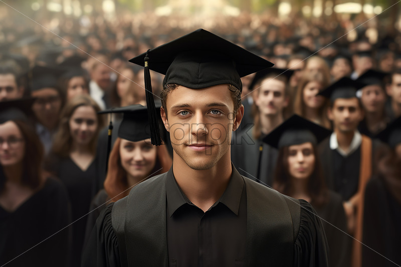 Home » Shop » AI Illustration » A graduate with a cap on his head in the foreground and more people in the background