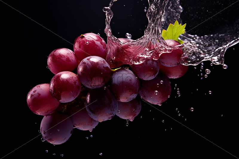 Home » Shop » AI Illustration » A grape on a black background with splashes of water