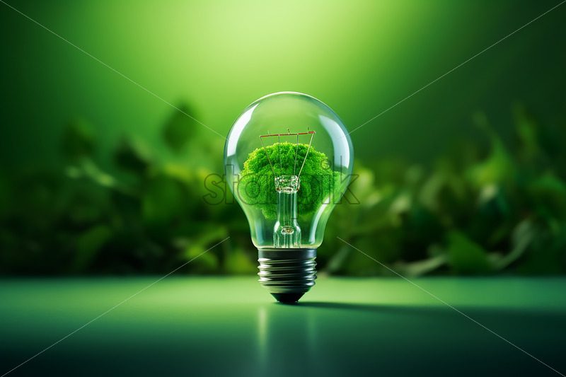 Home » Shop » AI Illustration » A green lamp and leaves on the background that symbolize green energy
