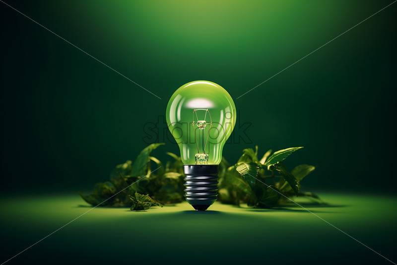 Home » Shop » AI Illustration » A green lamp and leaves on the background that symbolize green energy