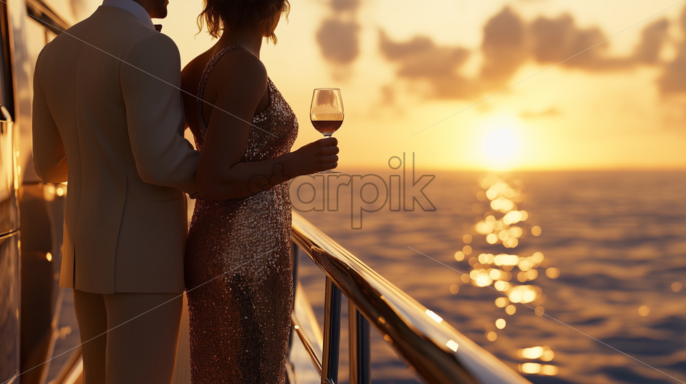 Home » Shop » AI Illustration » A group of friends drinking wine for a toast under a golden sunset on a luxurious yacht