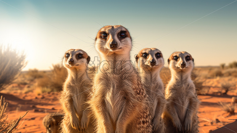A group of meerkats standing alert, keeping watch over the desert surroundings