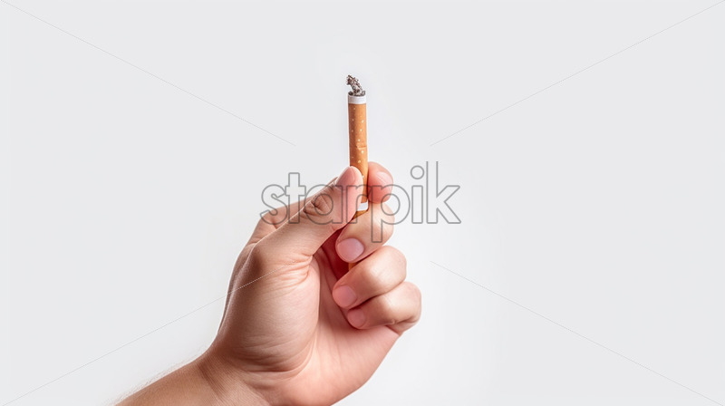 A hand holding a cigarette on a white background