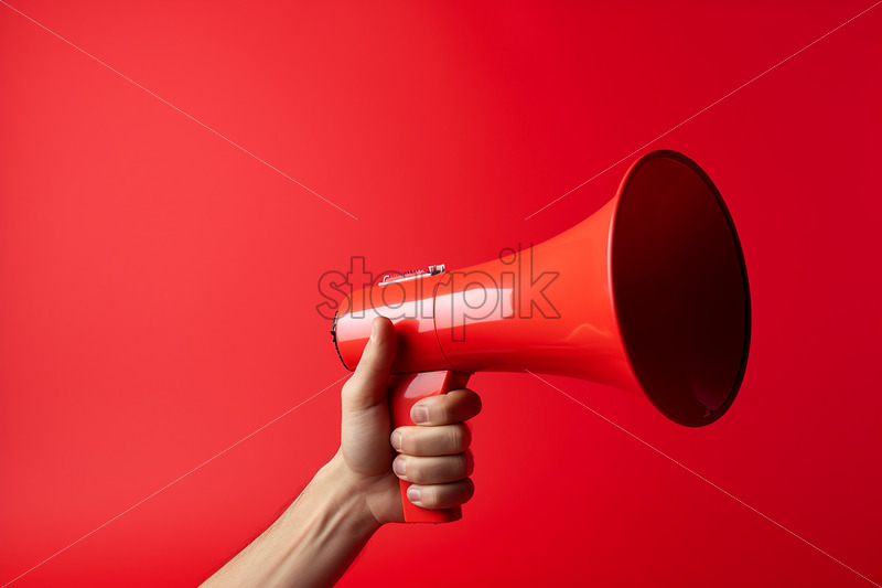 Young man smiling and showing his phone with green screen into the camera on a blue background