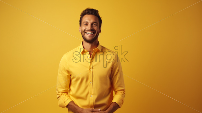 A happy man in colorful clothes on a pastel background