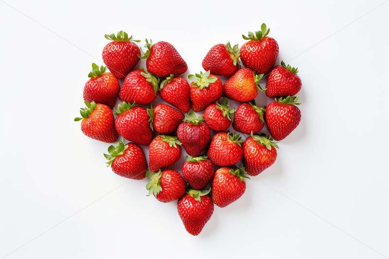 A heart made of strawberries on a white background