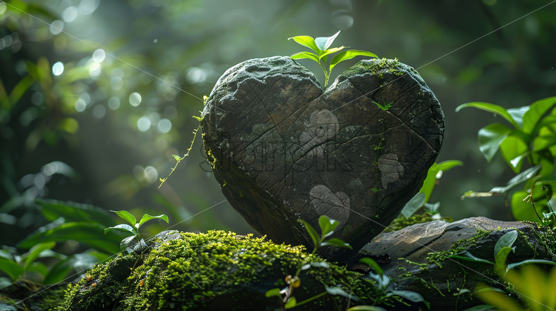 An ancient, moss-covered ruin peeking through the thick vegetation