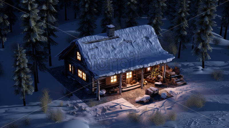 Home » Shop » Uncategorised » A house in the forest in winter, aerial view