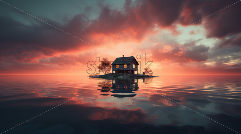 Sunset on the Aegean sea, Sun, land in the distance, water, Greece