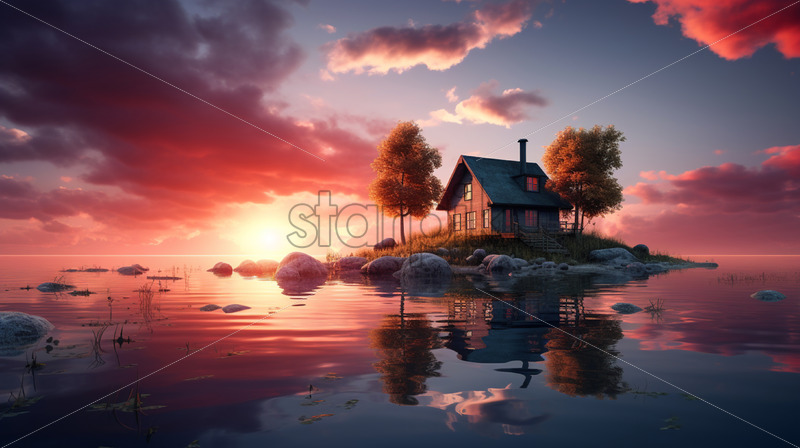 Sunset on the Aegean sea, ship and land in the distance, water, Greece