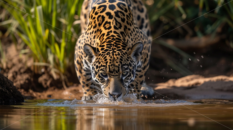 Elusive jaguar stealthily prowling through dense underbrush, eyes fixed on potential prey