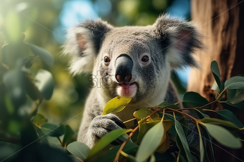 Close view of a squirrel sitting on a green metal fence, trees on the background