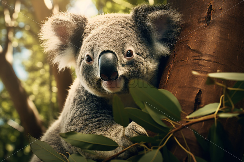 Close view of a squirrel sitting on a green metal fence, trees on the background