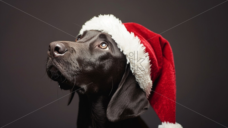 A labrador dog with a Santa hat
