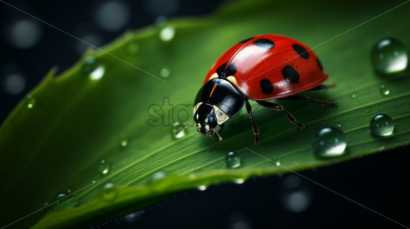A bright red ladybug crawling on a fresh green leaf Royalty Free Stock Video Footage