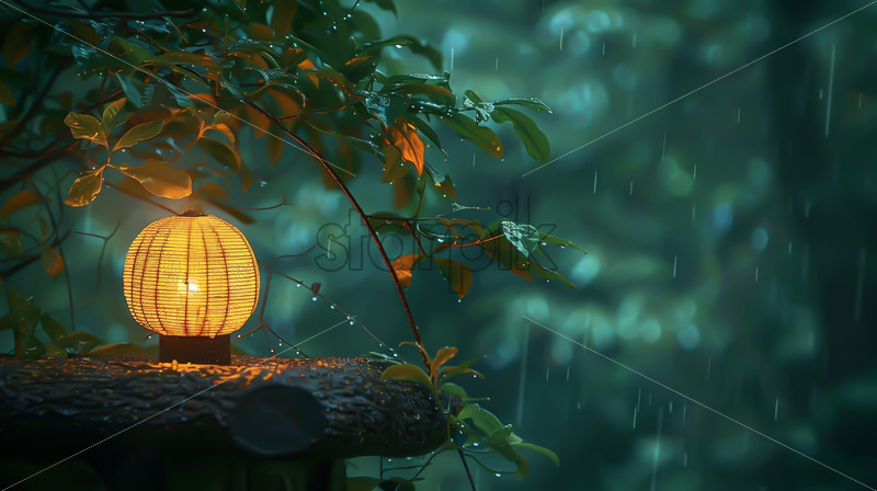 Hanged lamps at outdoor restaurant with multiple visitors on the background, BBQ