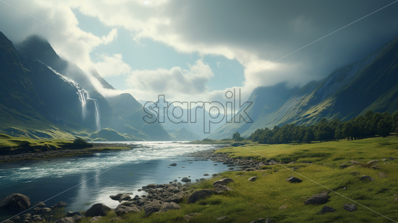 Home » Shop » Uncategorised » A landscape of a fjord with a small stream