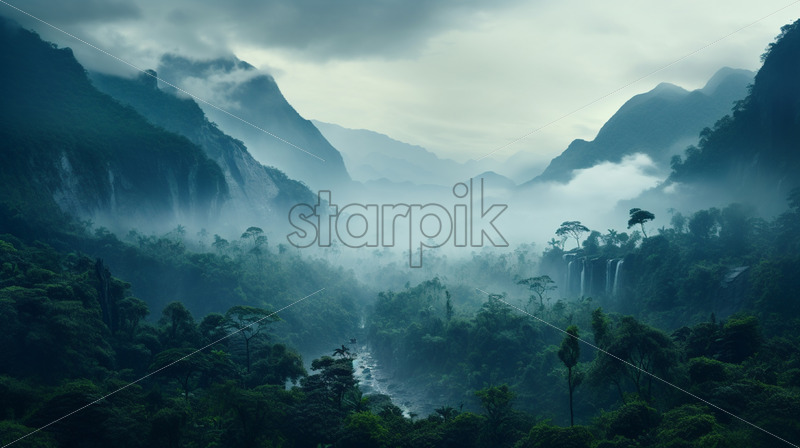 Home » Shop » Uncategorised » A landscape of a jungle in the fog