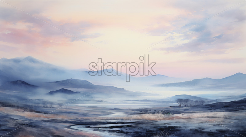 Aerial drone view of nature in Georgia. Caucasus Mountains, Gergeti Trinity Church located on the top of a hill, greenery, valley