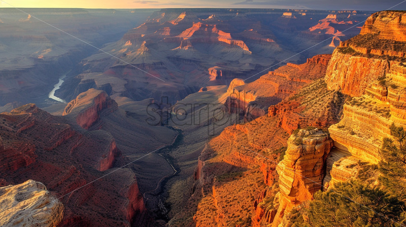 Colorado river near the Hoover Dam, red rocky cliffs around it in Nevada, USA