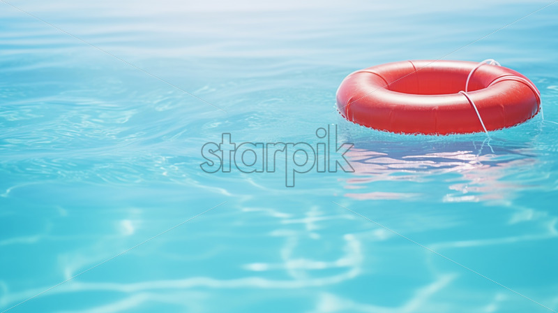 A lifebuoy floats in the pool