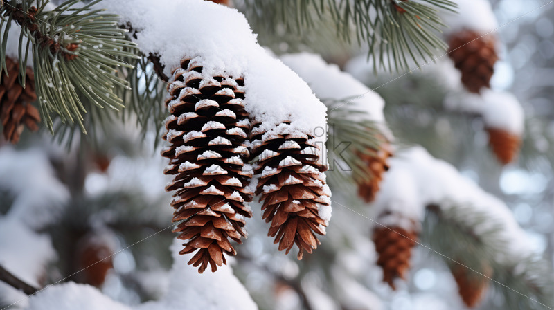 Red and yellow forest with snow in Sinaia at sunrise, Romania