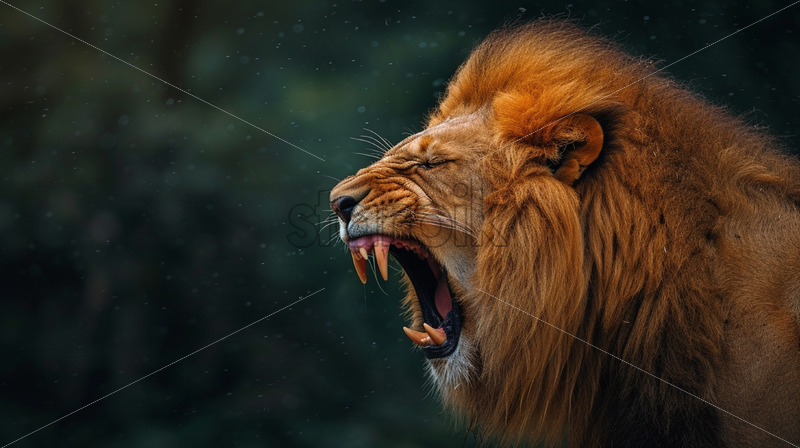 Portrait of a lion on a black background with neon lights