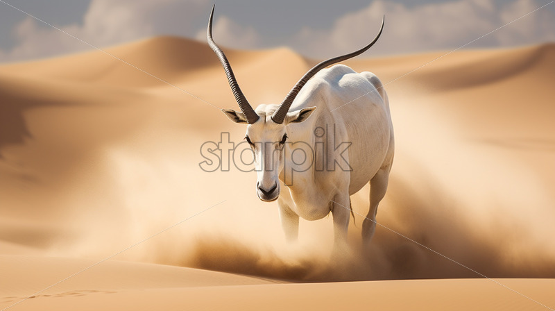 A majestic Arabian oryx gracefully navigating the sandy dunes of the desert