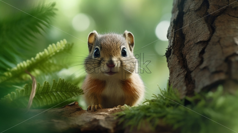Horse looking at the camera with blue eyes and red halter in the mountains, in the snowy forest