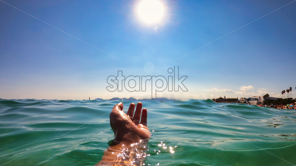 Home » Shop » photo » A man holding hand above the wate, Mediterranean sea
