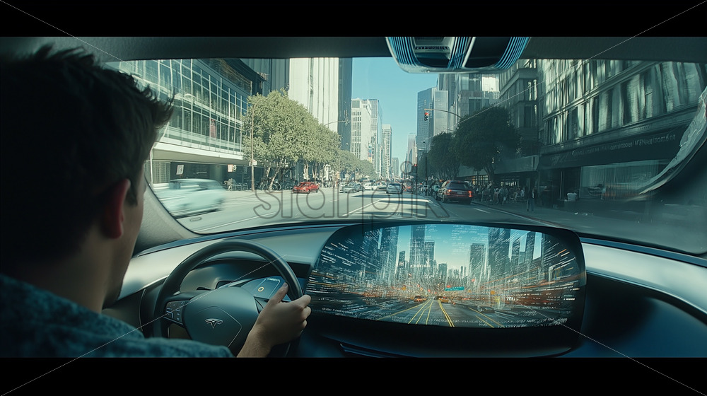A man inside a self-driving electric car
