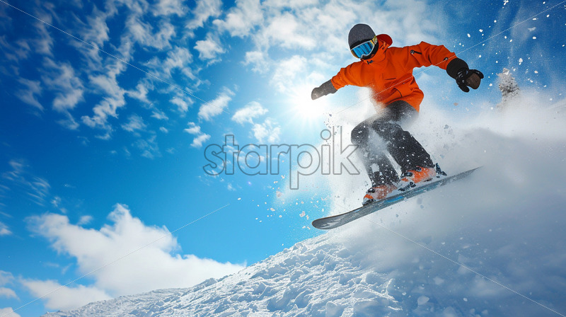 A man practicing winter sports, snowboarding