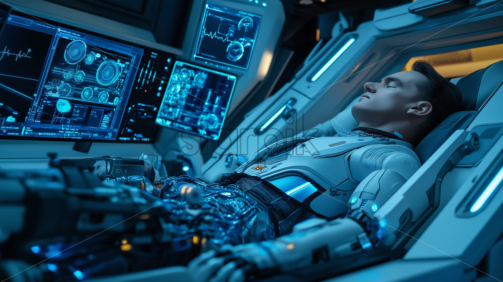 holographic projection of a patient’s body, showing real-time quantum medical scans