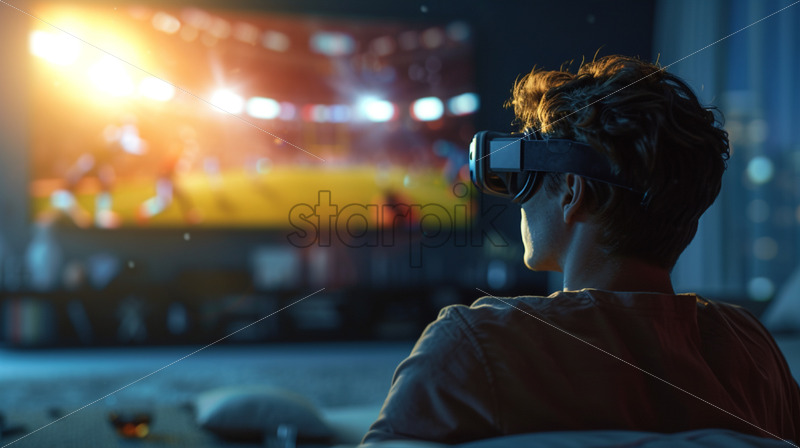 A young woman is excited while putting on VR glasses, controllers. Slow motion virtual reality Download royalty free stock video footage Royalty Free Stock Video Footage
