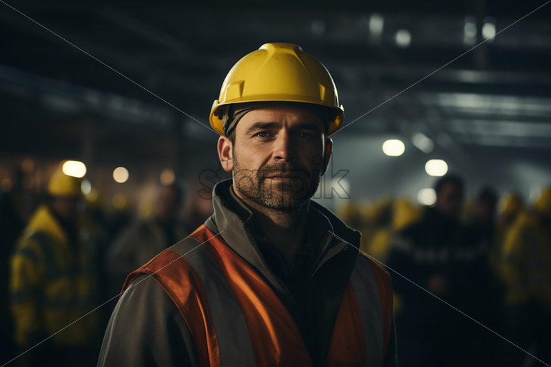 Home » Shop » AI Illustration » A man with a yellow protective helmet in the foreground