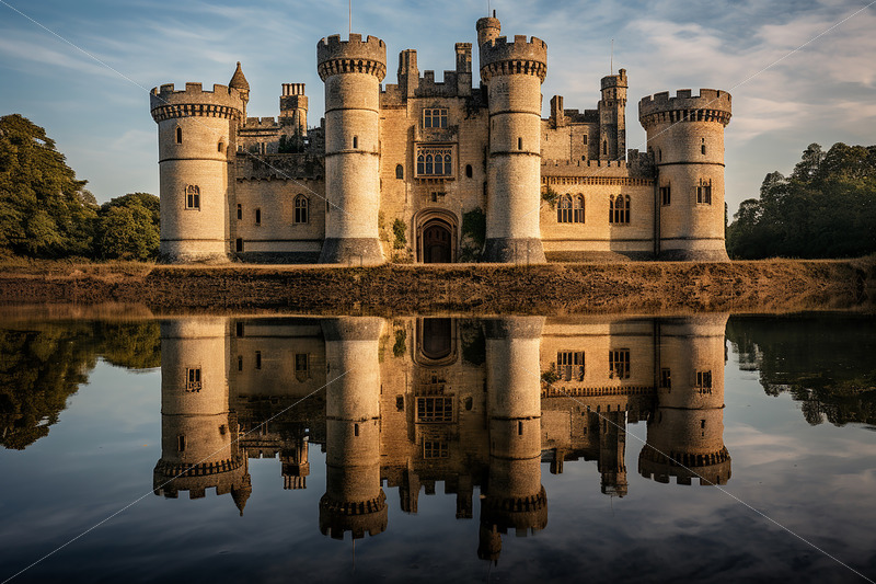 Aerial drone view of the Corvin Castle located in Hunedoara, Romania. Knight statue located on the top of a tower, greenery on the background Royalty Free Stock Video Footage