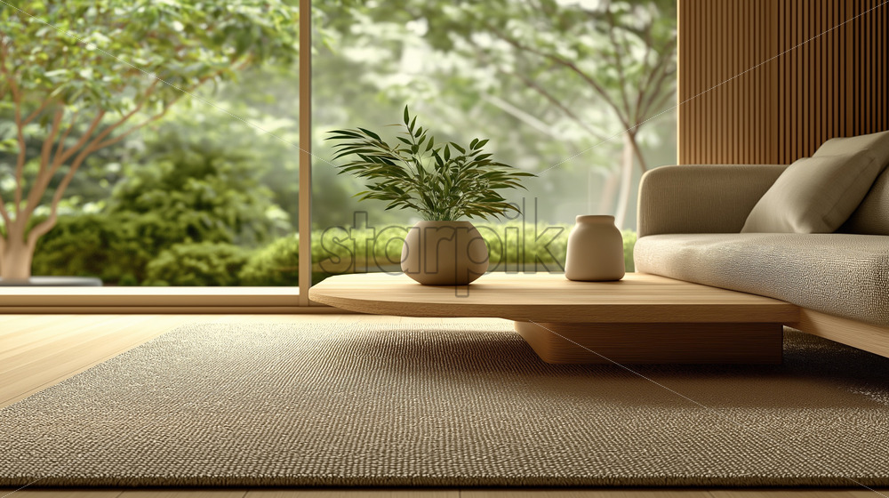 Modern apartment architecture in the city with clear glass wall in the kitchen and dining table with bright ambience in a wood and gray theme with veranda