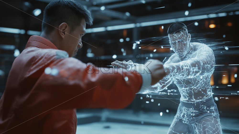 A mixed-reality martial arts competition where fighters train with holographic opponents