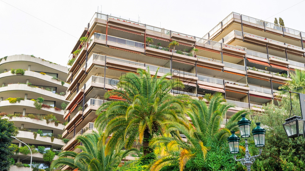 MONACO – AUGUST 8, 2021: Street scape of the town. Modern buildings, greenery, people, sunny day