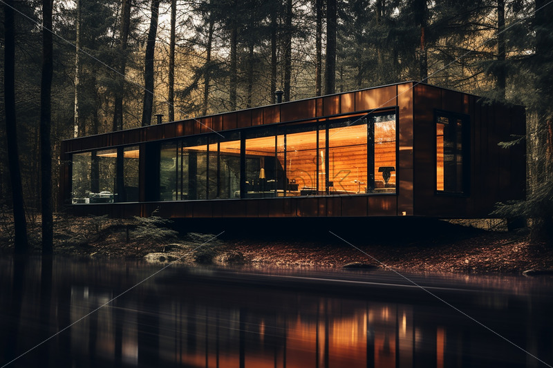 Home » Shop » Uncategorised » A modern house in a forest on the bank of a river