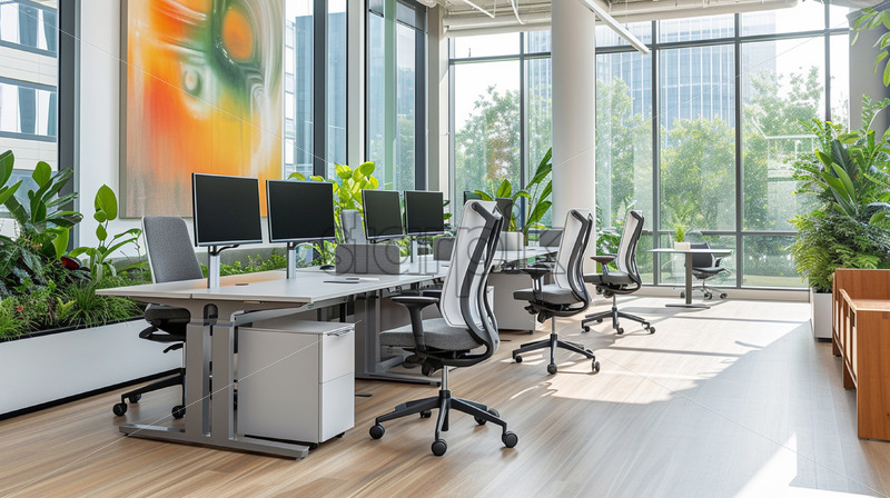 A modern office equipped with furniture and equipment