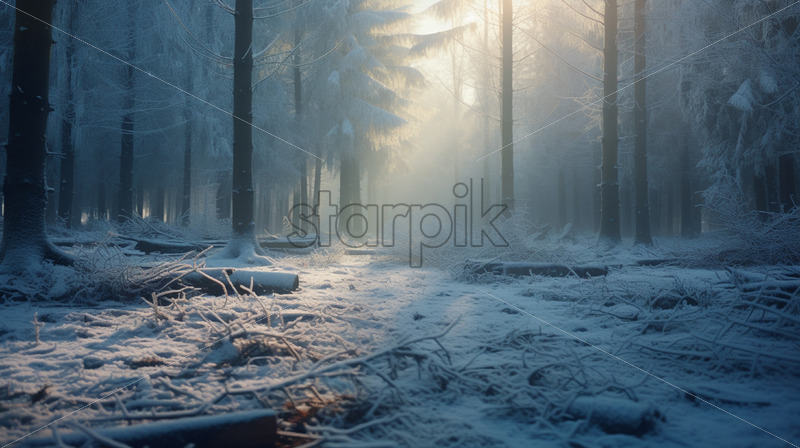winter landscape in the mountains of Sinaia in a sunny day, a woman skiing, Romania