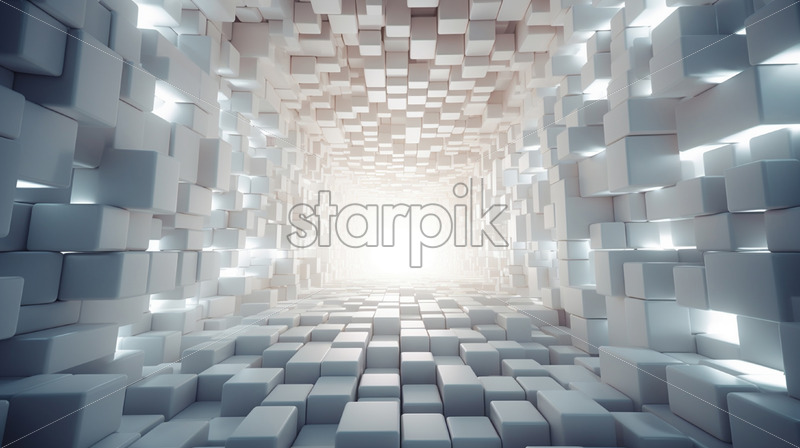 A mosaic of white cubes in perspective, forming a tunnel