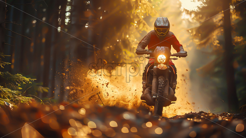 Home » Shop » Uncategorised » A motorcyclist sportsman through the autumn forest
