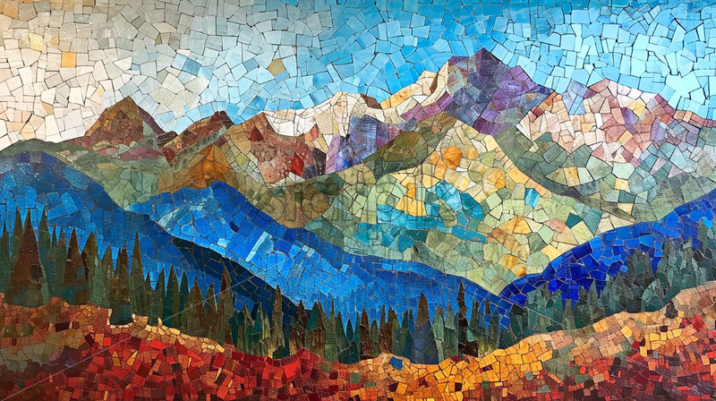 A mountain landscape created from mosaic
