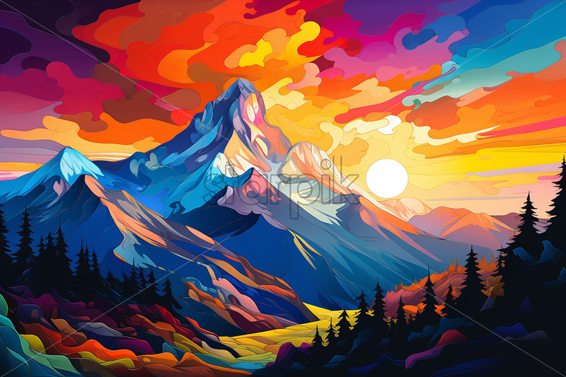 A road in Switzerland at sunset blue hour. Mountains covered in snow on background.