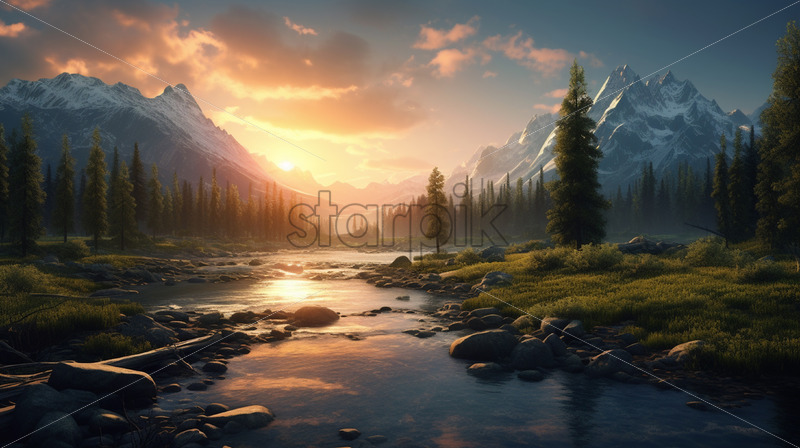 Dolomite Alps in Italy. View of mountains, valley and slopes covered with greenery, road with cars