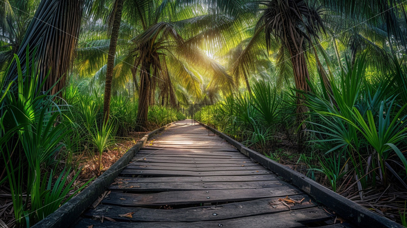 Home » Shop » Uncategorised » A network of charming wooden boardwalks winding through the palm groves