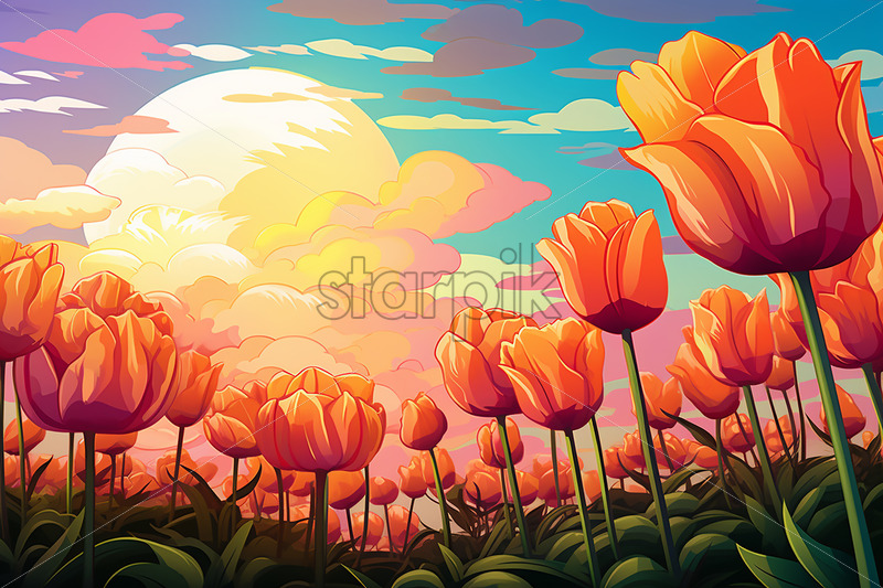 Home » Shop » Uncategorised » A painting of a field of tulips, digital painting