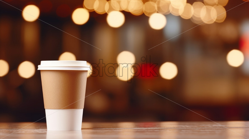 Large and small cup of coffee on a wooden table in a cafe. Recycling idea